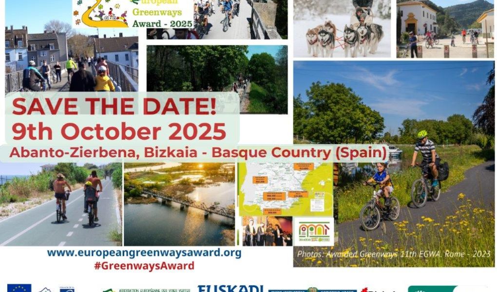 The 12th edition of the European Greenways Award will take place on 9 October 2025 in Bizkaia (Basque Country, Spain) The European Greenways Association, Basquetour, and the Fundación de los Ferrocarriles Españoles will organize the twelve edition of the European Greenways Awards 2025, in cooperation with the Provincial Council of Bizkaia. The award ceremony will be held 9th […]